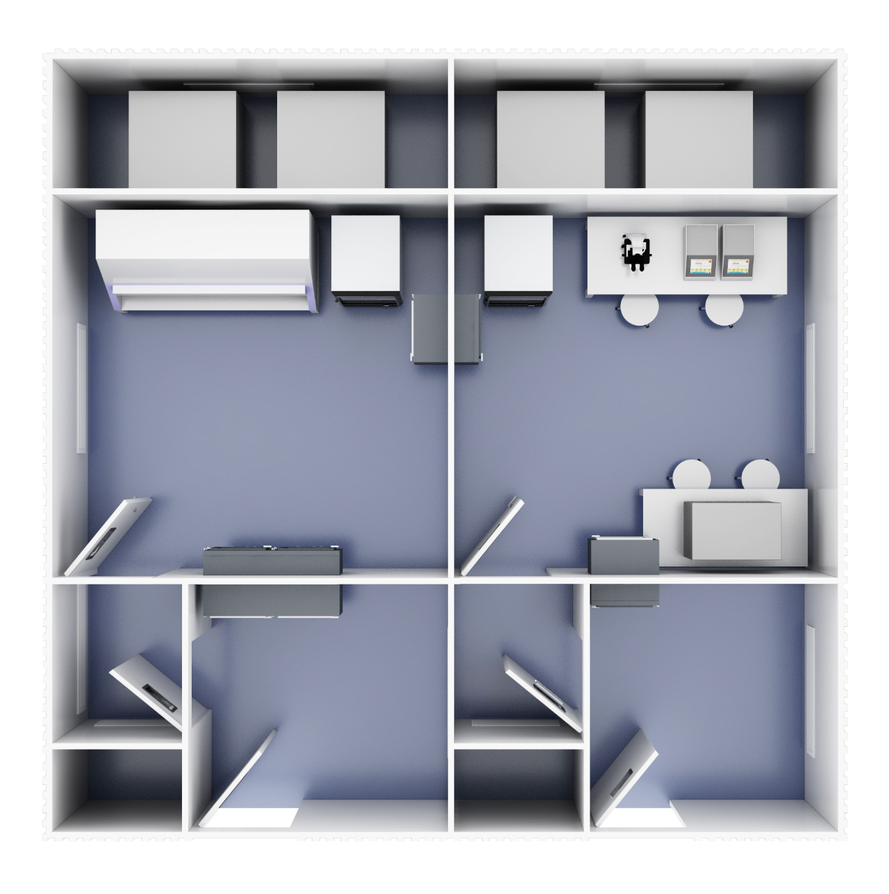 乐孜睿泰以《医学生物安全二级实验室建筑技术标准》为基准,结合病患隔离收治、手术、采样以及检测等不同功能,全新研发了多种为特殊疫情所准备的设施设备。